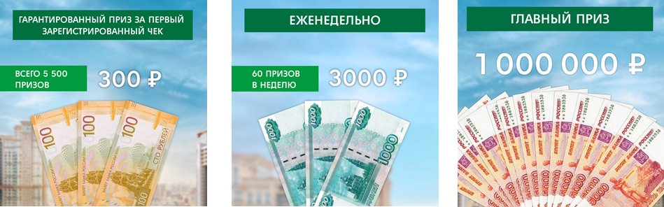 Первые 5 500 участников получат гарантированный приз 300 руб. за первый зарегистрированный чек!