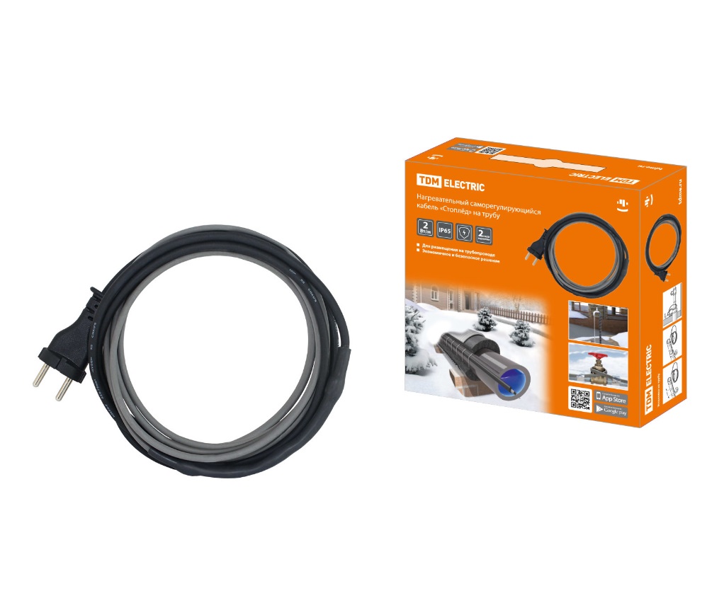 Греющий кабель саморегулирующийся для обогрева труб с вилкой на трубу 6м 96Вт SQ2510-0003.