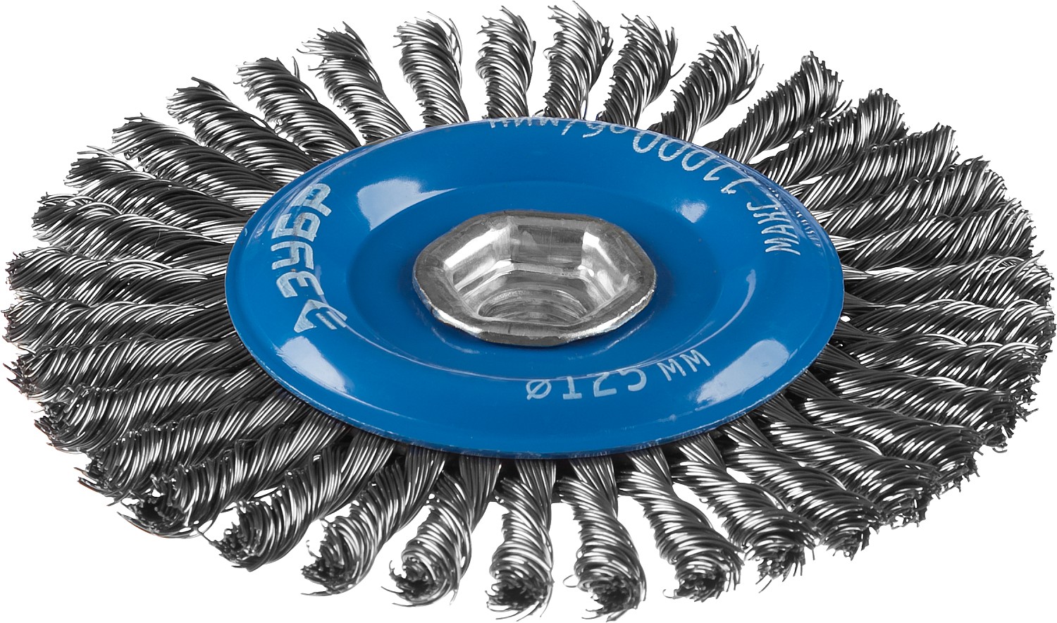 Щетка для УШМ дисковая плетеные пучки стальной проволоки 0,5мм 125мм М14 35192-125