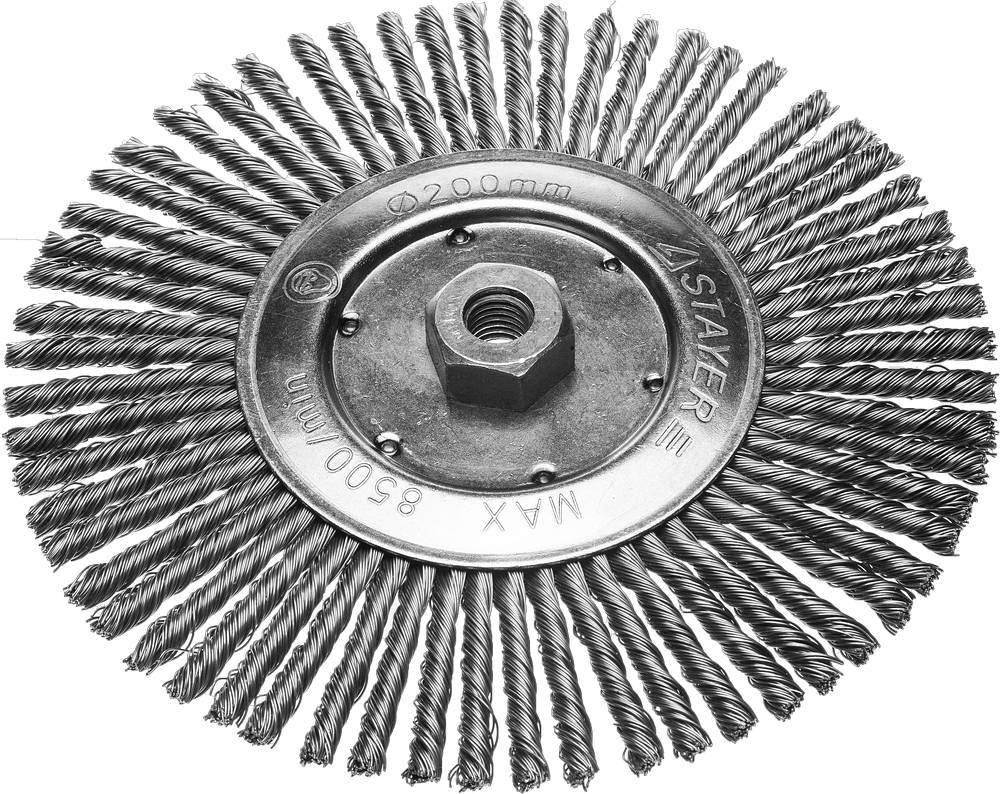 Щетка для УШМ дисковая плетеные пучки стальной проволоки 0,5мм 200мм М14 35192-200