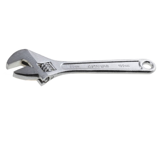 Ключ разводной Stayer, серия MASTERПредназначен для монтажа и демонтажа резьбовых соединений с широким диапазоном шестигранных профилей гаек и болтов. Изготовлен из высококачественной инструментальной стали. Рабочие поверхности губок подвергнуты индукционной закалке. Хромированное покрытие для защиты от механических повреждений и коррозии. Шкала для быстрой и точной установки размера зева. Рукоятка с отверстием для подвески.