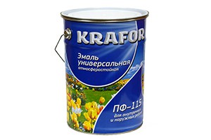 Универсальная атмосферостойкая эмаль ПФ-115 от KRAFOR устойчива к изменению температуры от –50°С до +60°С. Обладает хорошей укрывистостью и сцеплением с поверхностью (адгезией). Предназначена для окраски деревянных, металлических и других поверхностей, подвергающихся атмосферным воздействиям, и для окраски внутри помещений (оконные рамы, двери, кирпичные и бетонные поверхности, ДВП, ДСП). Широкая цветовая палитра.Расход: 100-180 г/м2 на однослойное покрытие, в зависимости от цвета эмали