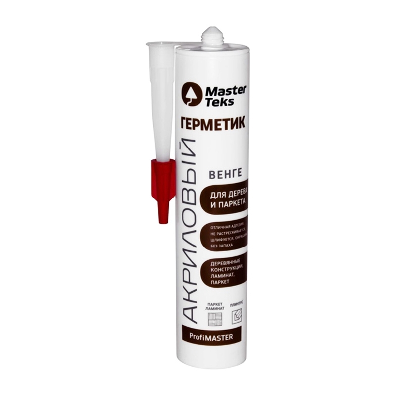 Герметик MASTERTEKS PROFMASTER акриловый для дерева и паркета венге 290 мл 12 предназначен для герметизации межбревенных швов и соединений конструкций из древесины различных пород. Состав применяют во время ремонтно-строительных работ внутри и снаружи помещений.Продукт подходит для заполнения трещин в паркете, ламинате, дверной коробке, оконное раме, плинтусе и подоконнике.
