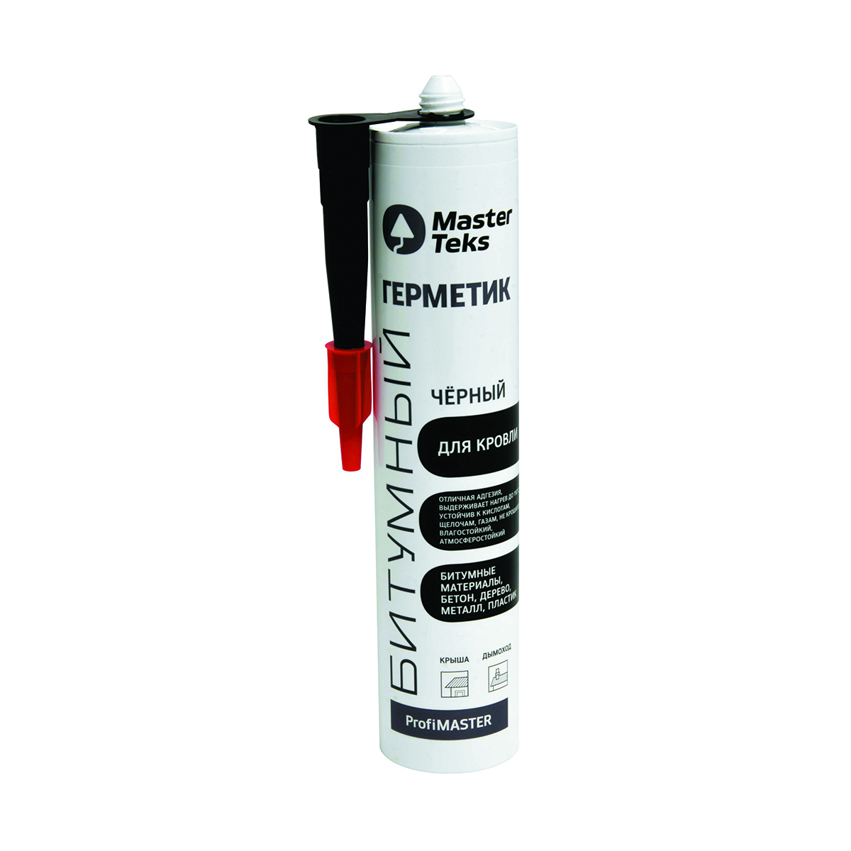 Герметик PROFMASTER битумный для кровли MASTERTEKS- Отличная адгезия к строительным материалам – битумные поверхности, дерево, металл, пластик, бетон;