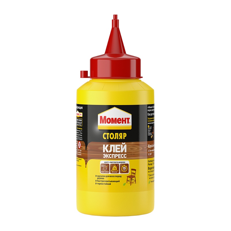 Предназначен для всех пород дерева, ДСП, фанеры, шпона, облицовочных материалов, картона, фурнитуры. Рекомендуется применять при сборке и ремонте мебели. Имеет цвет светлых пород дерева. Устойчив к кратковременному воздействию воды. Характеристики