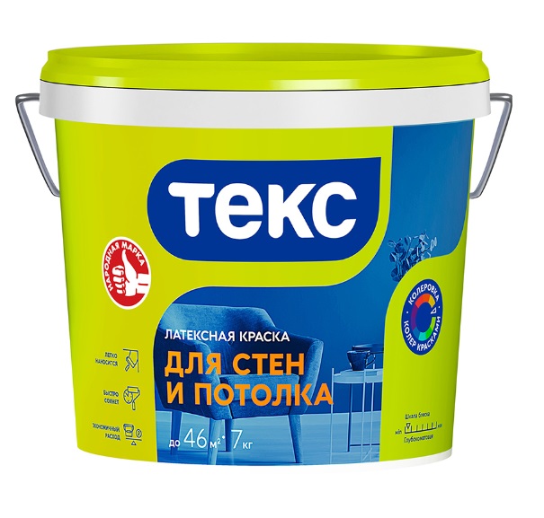 Краска в/д интерьерная латексная 7кг Текс белая