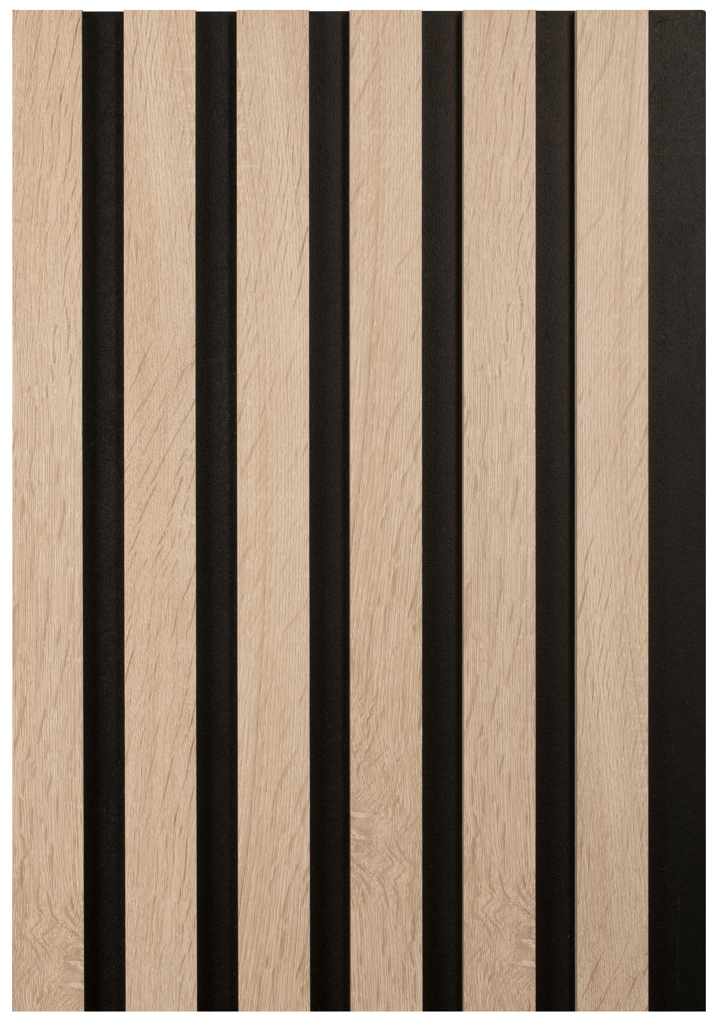 Реечная панель (панель с рейками) представляет собой готовое решение по быстрому созданию модного стиля с рейками в интерьере. На подложке из МДФ толщиной 3 мм смонтированы шесть реек. Панели имеют паз с одной стороны для стыковки между собой.Размер одной панели: высота 2700 мм, ширина 320 мм, толщина панели вместе с рейками 13 мм.