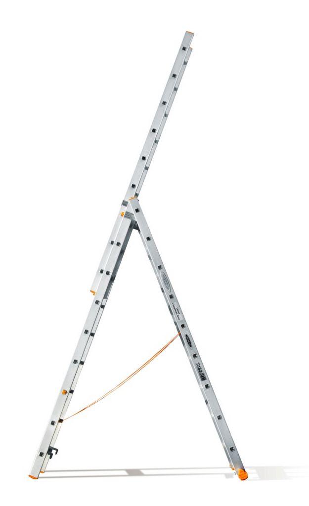 Лестница алюминиевая 3-х секционная складная весьма надежна за счет использования прочных соединений и при этом может трансформироваться из стремянки в приставную лестницу и наоборот. В качестве основного материала для изготовления лестницы был выбран алюминий. Это в свою очередь обеспечивает высокие эксплуатационные свойства лестницы и ее долговечность. Благодаря трехсекционной конструкции, лестница отличается высокой функциональностью и практичностью. Если нужна лестница повышенной прочности и устойчивости для работы в различных условиях, то данная модель хороший вариант. Верхняя съемная секция может быть использована отдельно как небольшая приставная лестница. Усиленный профиль лестницы для профессионального использования. Оптимальное рифление по ребру профиля перекладины для защиты от от соскальзывания. Функция разноуровневой установки.Количество ступеней: 3х11