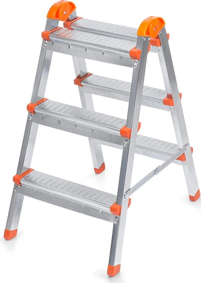 Стальная 3-х ступенчатая двухсторонняя стремянка "Ярус"двусторонняя для бытового применения. Прочная надежная конструкция. Широкое основание и двухстороннее расположение ступеней обеспечивают устойчивое положение во время работы. Рифленая поверхность ступени предотвращает соскальзывание стопы. Надежность изделия во время работы дополнительно обеспечивается ограничительной лентой из полиэстера. Легкая сборка изделия для транспортировки.