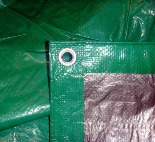 Тенты ТАРПАУЛИН (Корея) с металлическими люверсами, плотность 120 г/м²Применяются при проведении отделочных работ для укрытия строительных материалов, закрытия оконных проемов, фасадов зданий, кровли во время реконструкции, а так же для создания временных укрытий, навесов, палаток на открытой местности. Отлично подходят для укрывания прицепов, автомашин, катеров, перевозимых грузов. Незаменимы для укрытия сельскохозяйственной продукции, например сена или зерна. Изготовлены из полиэтиленовой ткани, с двух сторон покрытой специальной светостабилизирующей плёнкой, не пропускающей ультрафиолетовые лучи. Полностью водонепроницаемы. По периметру тентов через 1 м установлены алюминиевые люверсы (железные кольца с внутренним диаметром d = 12мм). В люверсы продеты прочные шнуры, с помощью которых тенты крепятся. Температурный режим применения тентов от -40°С до +80°С.