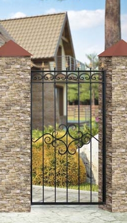 Калитка кованая ДАЧНАЯМеталлическая калитка, декорированная коваными элементами. Каркас выполнен из профильной трубы 50 х 25 мм, заполнение — труба 15 х 15 мм. Для защиты от коррозии калитка покрыта полимерной краской «цертапласт».