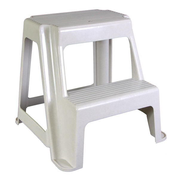 Пластиковый табурет со ступенькой. На горизонтальных поверхностях противоскользящее рифление.Цвет: бежевый