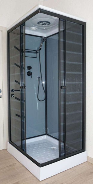 Душевая кабина размером 80*80*215 Задние стекла графит, передние стекла тонированные с полосами, толщина стекла 4 мм.