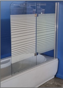 Душевое стекло на ванну, складное, распашное. 6 мм, прозрачное: рисунок: "Белые Полосы". Профиль-петля (алюминиевый, хром) для крепления на стену, регулировка ширины до 2 см, петли (цинковый сплав). Характеристики
