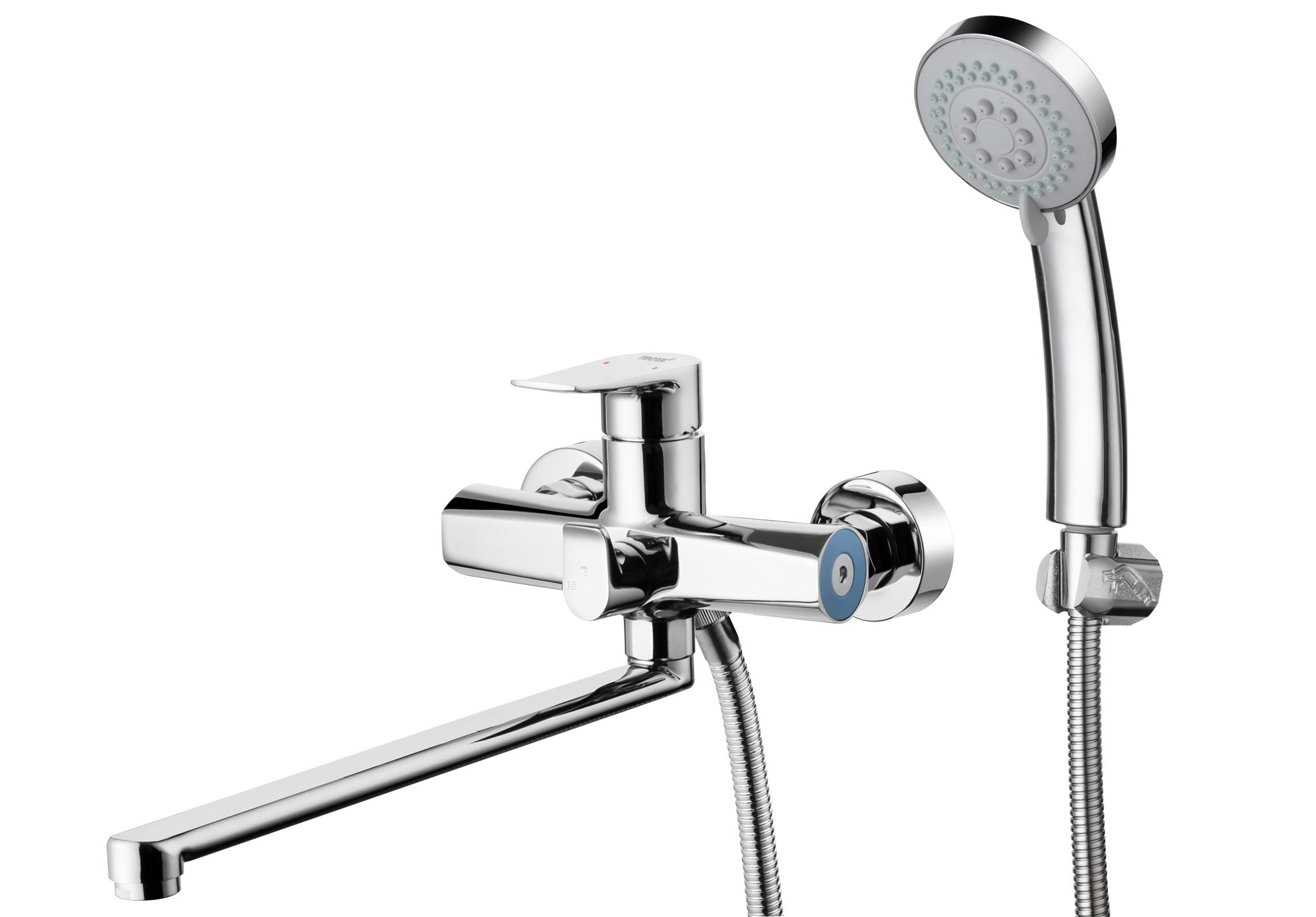 Однорычажный смеситель для ванны G-Lauf GOB7-A134. Цвет: хром. Сочетает в себе современные технологии и универсальный современный дизайн. Превосходно дополнит любой интерьер ванной комнаты. Изготовлен из качественного цинка по технологии литья под давлением. Это обеспечивает равномерную толщину стенок смесителя, сводит к минимуму риск образования внутренней коррозии. Полировка и последующая гальванизация смесителя делает его поверхность максимально крепкой, защищает изделие от воздействий внешней среды и механических повреждений. Керамический картридж 35 мм обеспечивает точную настройку температуры и напора воды. Излив с поворотом на 360 градусов. Аэратор из пластика с функцией легкой очистки. Душевая лейка с настенным держателем и защитой от известковых отложений. Душевой шланг в металлической оплетке длиной 1,5 м. Переключатель душ/излив с керамическими пластинами. Стандарт подключения: G 1/2. Монтаж: на стену. В комплекте поставки: смеситель для ванны, эксцентрики с отражателями, лейка, шланг, держатель. Характеристики