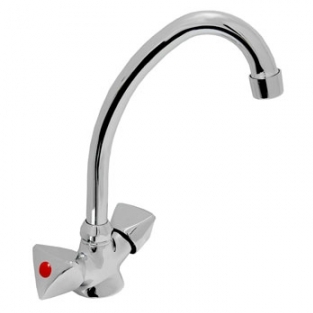 Модель ЦС 120001 ЛючияСмеситель для мойки и умывальника с высоким поворотным изливом. Излив С -образный, длиной 200 мм, с развальцованным носиком. С двумя ручками из металлизированного пластика. Система крепления при помощи шпильки. Гибкая подводка 1/2″(в комплект не входит).