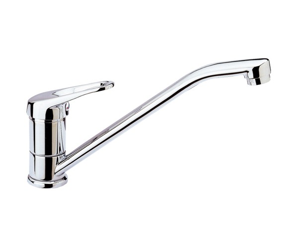 Модель Remer RR F40 2Смеситель для кухни, с низким поворотным изливом. Излив плоский, L-образный, длиной 230 мм. Оснащен одной металлической ручкой. Противонакипной латунный хромированный аэратор.