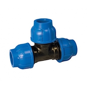 Тройник соединительный равносторонний для ПНД трубИспользуется для врезки или присоединения трубы под углом 90º в уже имеющуюся магистраль ПНД водопровода. Монтаж труб с тройником осуществляется следующим образом: труба с предварительно надетой на нее прижимной гайкой и гайкой-крышкой вставляется в прижимную пластиковую втулку. Зафиксировав жестко трубу в корпусе отвода, гайку-крышку поворачиваем до упора по часовой стрелке. В результате получается герметичное соединение при наименьшей потере давления. Пропускная способность трубопровода не уменьшается. трубы ПНД с уголком. При необходимости соединение можно разобрать и собрать вновь.