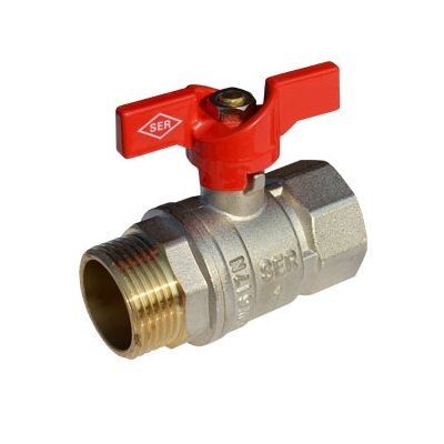 Кран шаровый латунный, резьбы гайка-штуцер, ручка «бабочка»Рабочая среда: неагрессивные жидкости и сжатый воздух