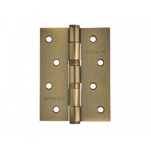 Накладные неразъемные петли на 2-х подшипниках. Открывание универсальное. Выполнены из стали толщиной 2,5 мм. Предназначены для установки на деревянные межкомнатные двери. Защищены гальваническим покрытием.Размеры: 4” (100 х 75 х 2,5 мм)