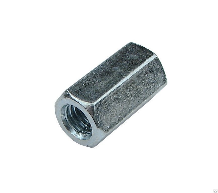 Метиз гайка М8 переходная/удлиненнаяПереходная гайка представляет собой некую удлиненную гайку, предназначенную для скрепления изделий, обладающих метрической резьбой. Специальная конструкция данного элемента позволяет легко и надежно осуществлять подобные операции. Используется переходная гайка для соединения резьбовых шпилек, болтов и прочих подобных метизов.