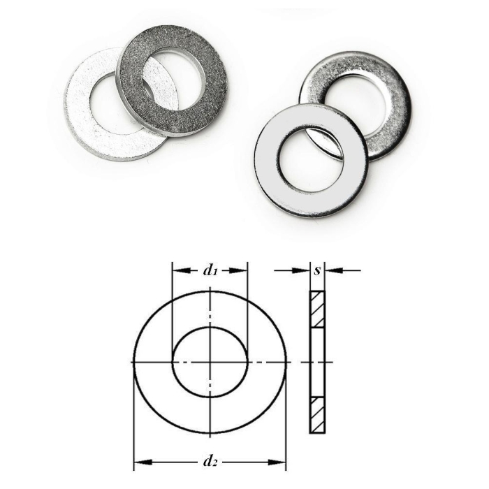 Шайба М8 плоская оцинкованнаяПлоские шайбы применяются в машиностроении и приборостроении в качестве контрящих элементов соединения. Шайба обыкновенная плоская представляет собой диск с отверстием внутри. Роль шайбы заключается в уменьшении и равномерном распределении давления на опорную плоскость. Наряду с этим плоская шайба защищает опорную плоскость от механического повреждения (например, при крепеже деревянных конструкций шайба защищает древесину от продавливания). Изготавливается шайба из высокопрочной стали, после чего оцинковывается. Устойчива к коррозии.