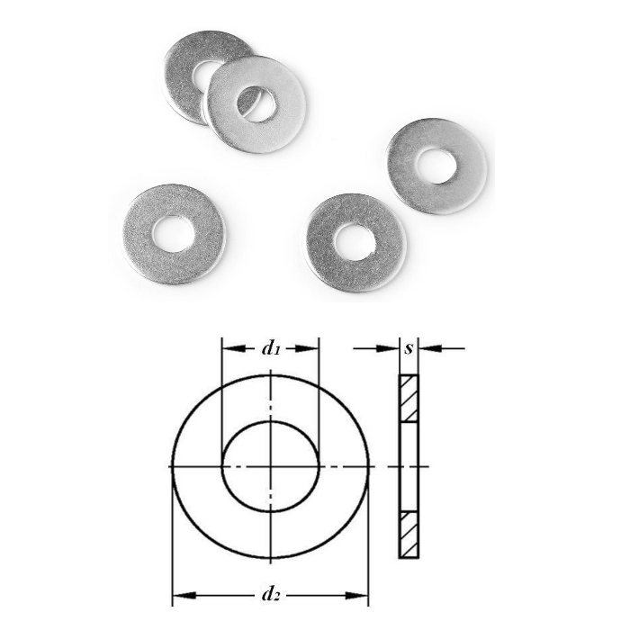 Шайба М12 плоская усиленная (увеличенная)Плоские усиленные шайбы применяются в машиностроении и приборостроении в качестве контрящих элементов соединения. Шайба представляет собой диск с отверстием внутри. Внешний диаметр и толщина диска у усиленной шайбы больше, чем у обычной плоской. Роль шайбы заключается в уменьшении и равномерном распределении давления на опорную плоскость и в её защите от механического повреждения (например, при крепеже деревянных конструкций шайба защищает древесину от продавливания). Изготавливается шайба из высокопрочной стали, после чего оцинковывается. Устойчива к коррозии.