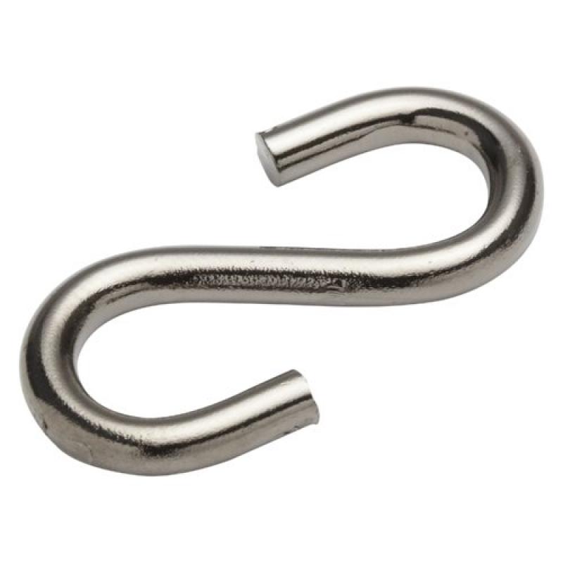 Крюк S-образный 7ммS-образный соединитель цепи (крюк) представляет собой изогнутый в виде буквы S стальной прут. Применяется в подвесных конструкциях для подвешивания различных предметов и для быстрого ремонта цепей или тросов. Установку производят при помощи ударного инструмента: крюк продевают в звенья цепи или петли троса и загибают молотком. Материал — сталь, покрытие — цинк.