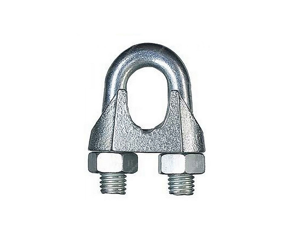 Зажим для троса 10ммЗажим троса стальной (другие названия: слоник, зажим с площадкой) конструктивно выполнен в виде U-образной скобы, к которой двумя гайками снизу притягивается фиксирующая трос площадка. Площадка выполнена с выемкой для троса. Используется такой зажим для соединения тросов между собой, а также для изготовления петель на концах троса при погрузочных и строительных работах. Установку производят, поместив трос в зажим и затягивая гайки до полной его фиксации. Изготовлен из стали, покрыт цинком для защиты от коррозии.