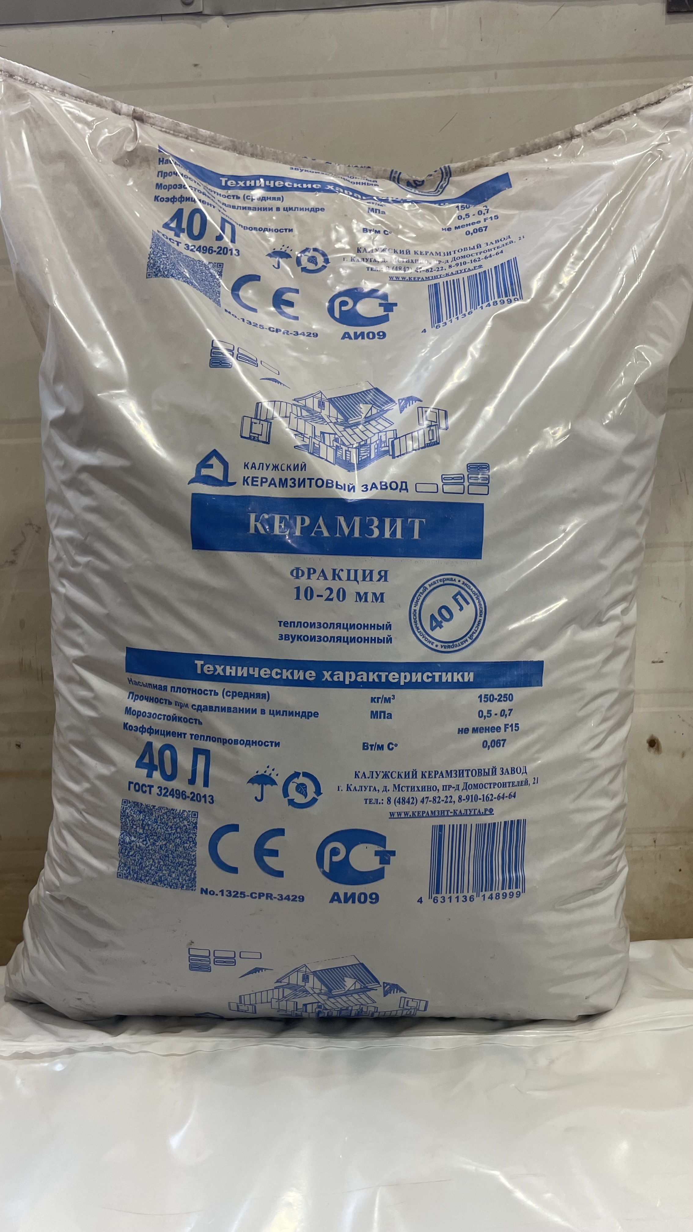 Керамзит фасованный фракция 10-20 40л
