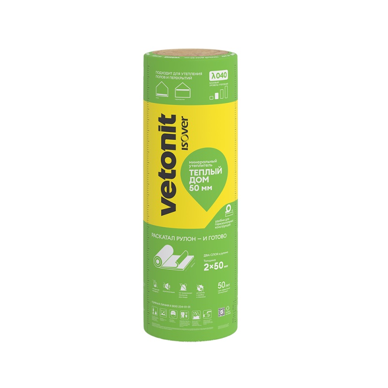 Утеплитель на основе кварца Изовер/Ветонит теплый дом твин 5490*1200*50мм/2шт/13,4м2/0,67м3/42/