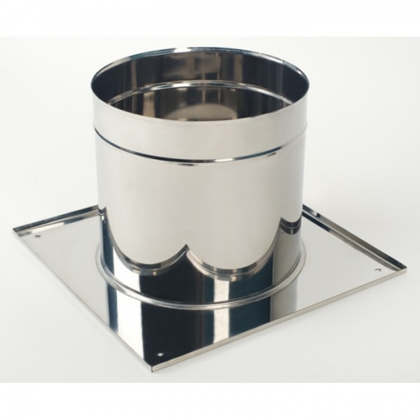 Потолочно проходной узел служит для прохождения дымоходом потолочных перекрытий. Также потолочно проходной узел можно использовать для прохождения дымоходом и стен. Основной функцией потолочно проходного узла служит термозащита легко воспламеняющихся материалов от нагретого дымохода. Забивать воздушные прослойки между дымоходом и проходным узлом следует базальтовой ватой, либо каким нибудь другим не горючим материалом..