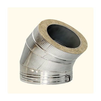 Угловой элемент для двойного дымохода со слоем теплоизоляции. Является базовым элементом для сэндвич дымохода и предназначен для изменения направления двухстенного дымового канала на угол 45º (или 135º). Внутренняя часть производится из нержавейки, имеет малый диаметр. Между ней и наружным кожухом есть слой изоляции. Колено сэндвич не является несущим элементом. Вес всего дымохода не должен воздействовать на этот участок. Его основная задача – обеспечение изменения угла наклона конструкции. Выполнен угловой элемент из нержавеющей стали. Для утеплителя и слоя изоляции применяется минеральная базальтовая вата. Она не изнашивается со временем, отлично выполняет свои функции.Вид элемента: колено (угол) 135º