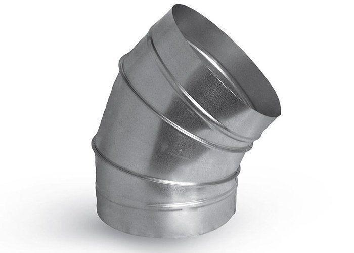 Отвод предназначен для соединения двух участков воздухопроводящей трубы под углом 45 градусов. Материал изготовления — листовая оцинкованная сталь (характеристики соответствуют магистральным линиям системы). Элемент обеспечивает максимально плавное изменение направления воздушного потока. Характеристики