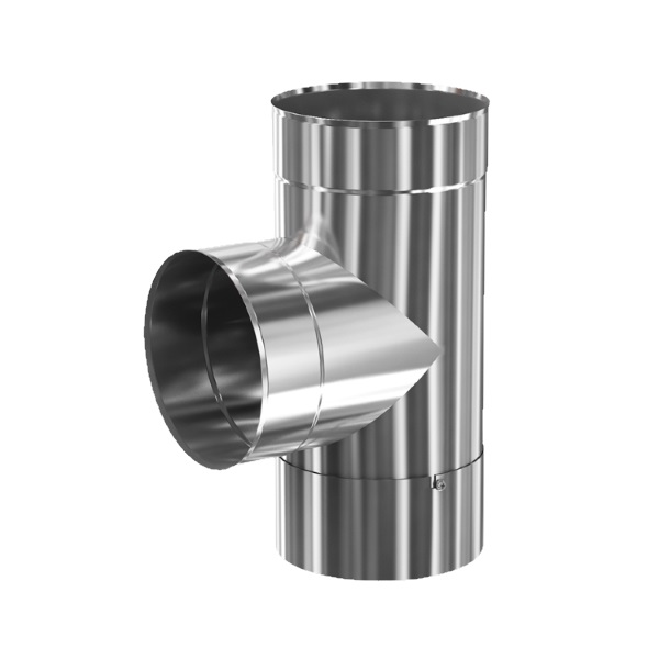 Тройник 90º – один из основных элементов дымоходной системы. Предназначен для соединения дымоотвода с основным каналом дымохода,служит для изменения направления дымового канала. Состоит из двух цилиндрических элементов, соединенных под углом. Тройник 90º используется в том случае, если нет технической возможности использовать тройник 45º..