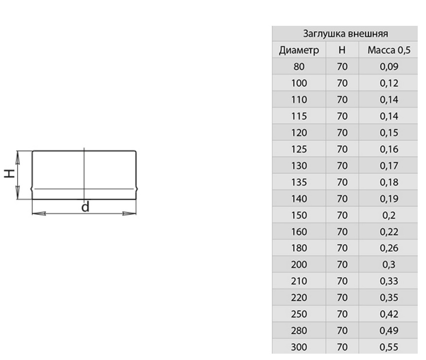 Используется для организации обслуживания дымохода. Элемент выполняется из стали толщиной 0,5 мм. В таблице приведены размеры и массы элемента в зависимости от диаметра и толщины стали..